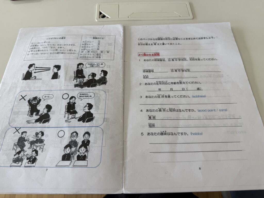 特に面接には練習が入ります。願書を取るのもお手伝いしています。